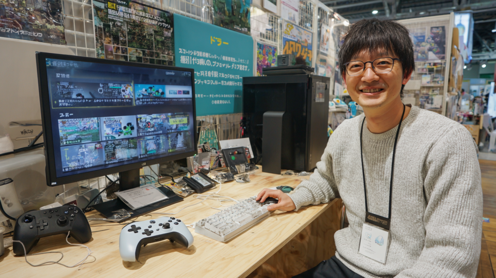 A:主な目的は、会社の周知と販売するゲームの宣伝です。うちの場合は普段B2Bの仕事が多いため、社員がエンドユーザの喜ぶ顔を見る機会は少ないんです。だから、ブースに立って直接接客できるのは社員にとって貴重な体験になります